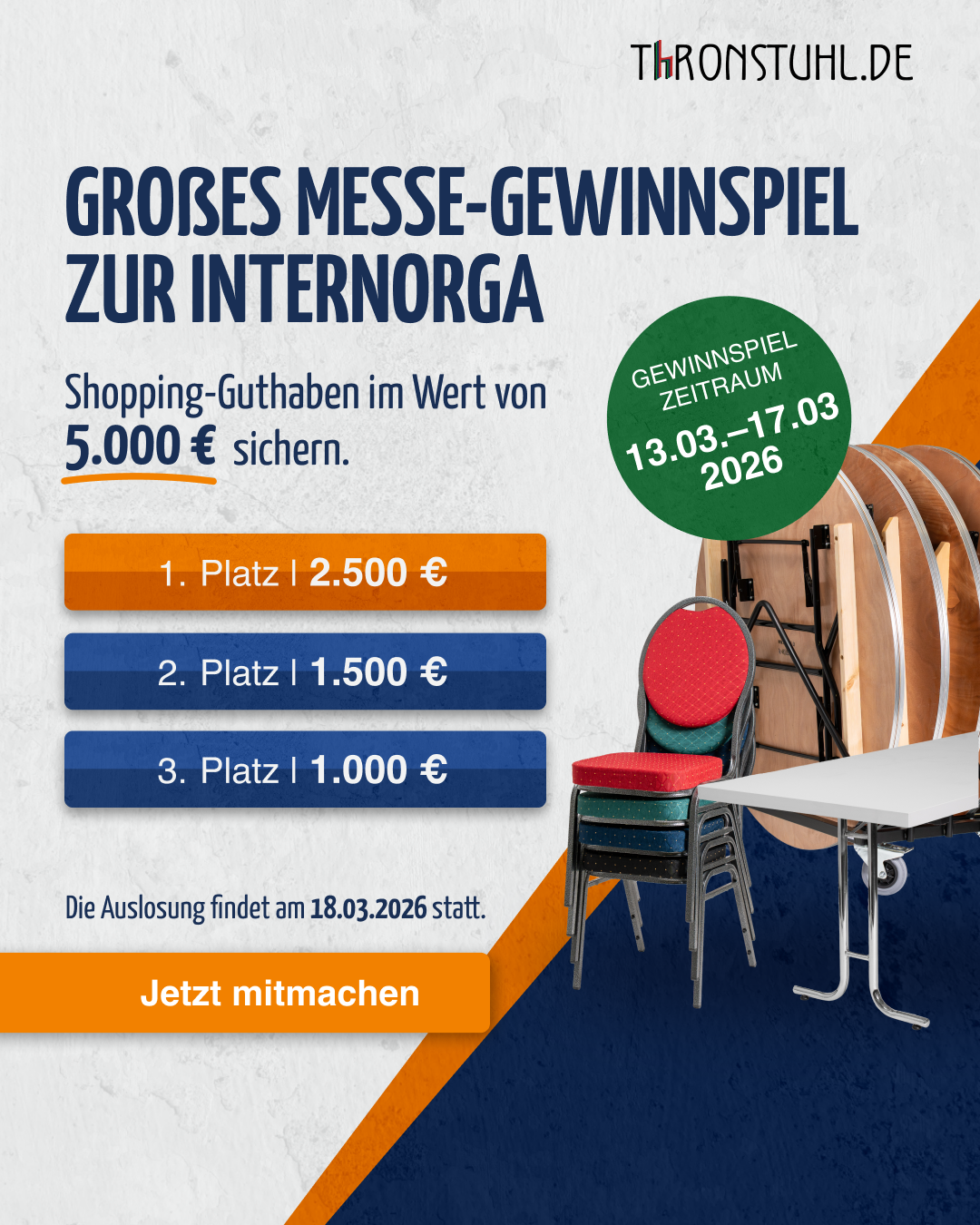13.03.2026 bis 17.03.2026. Die Auslosung findet am 18.03.2026 statt.