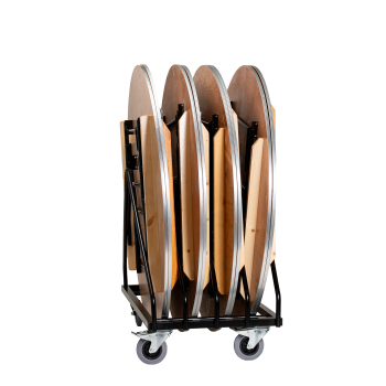 Unser Tischwagen / Transportwagen für Banketttische ist der ideale Tischrollwagen besonders für runde Klapptische.