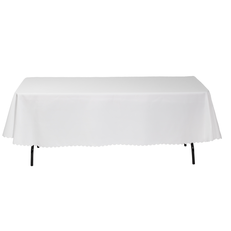 Die Oval abgerundeten Seiten der Tischdecke sorgen für eine dekorative Falte an den Ecken des Tisches.